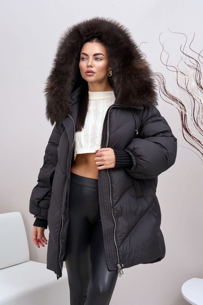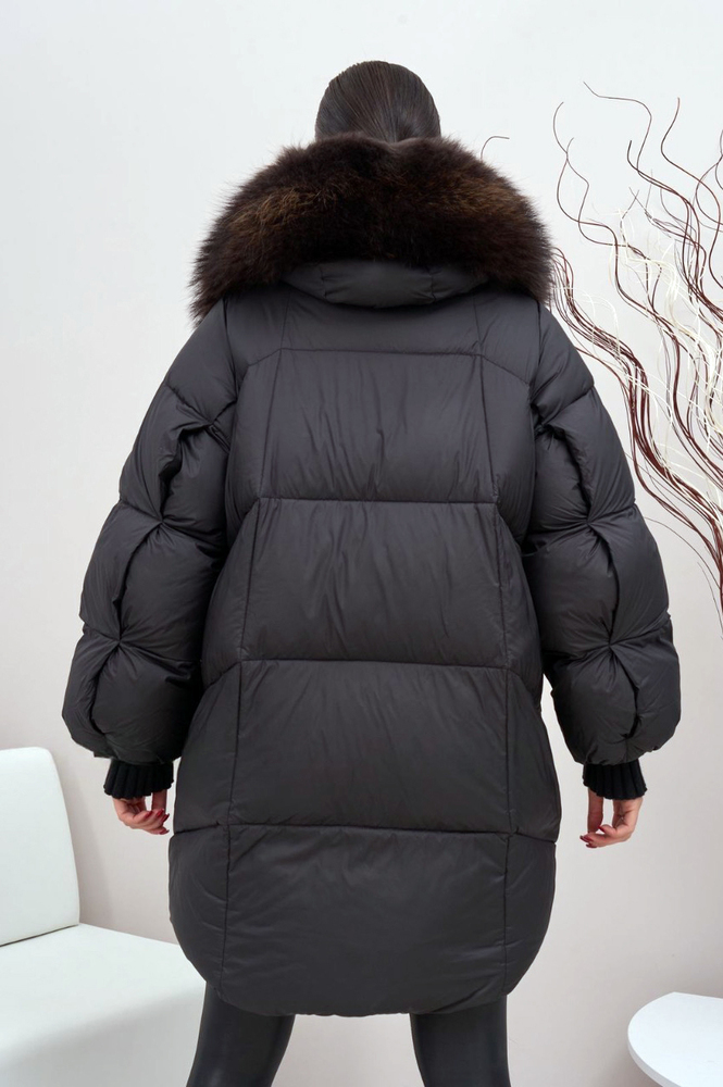 Женский пуховик Vivilona в стиле оверсайз выполнен в классическом черном цвете. Отличается крупным мехом енота на капюшоне, который добавляет уют и стильный акцент. Модель оснащена трикотажными манжетами для дополнительного комфорта и теплоизоляции. Застежка на молнии обеспечивает удобство и надежность. Этот пуховик идеально подойдет для холодных дней, сочетая современный дизайн и практичность.