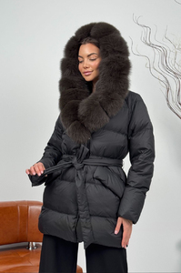 Женский пуховик марки Vivilona зимней коллекции 2025–2026 года средней длины выполнен в черном оттенке. Изюминкой модели стал шикарный меховой английский воротник из натурального меха, придающий изделию аристократичный и элегантный вид. Приталенный свободный крой оптимально подчеркивает линии фигуры, дарит свободу движений и комфортные ощущения. Оформление рукавов с оригинальной комбинацией тканей и вязаных манжет добавляет детали особую теплоту и уют. Уникальное сочетание красоты, удобства и современного дизайна делают этот пуховик идеальным выбором для любого женского гардероба.