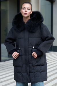 Стильный женский комбинированный пуховик Bogner черного цвета с шерстяными вставками на спине и плечах. Модель украшена накладными карманами и тесьмой на талии для подчеркивания силуэта. Наполнитель — пух и перо, а капюшон украшен мехом песца, что обеспечивает тепло и роскошный внешний вид.