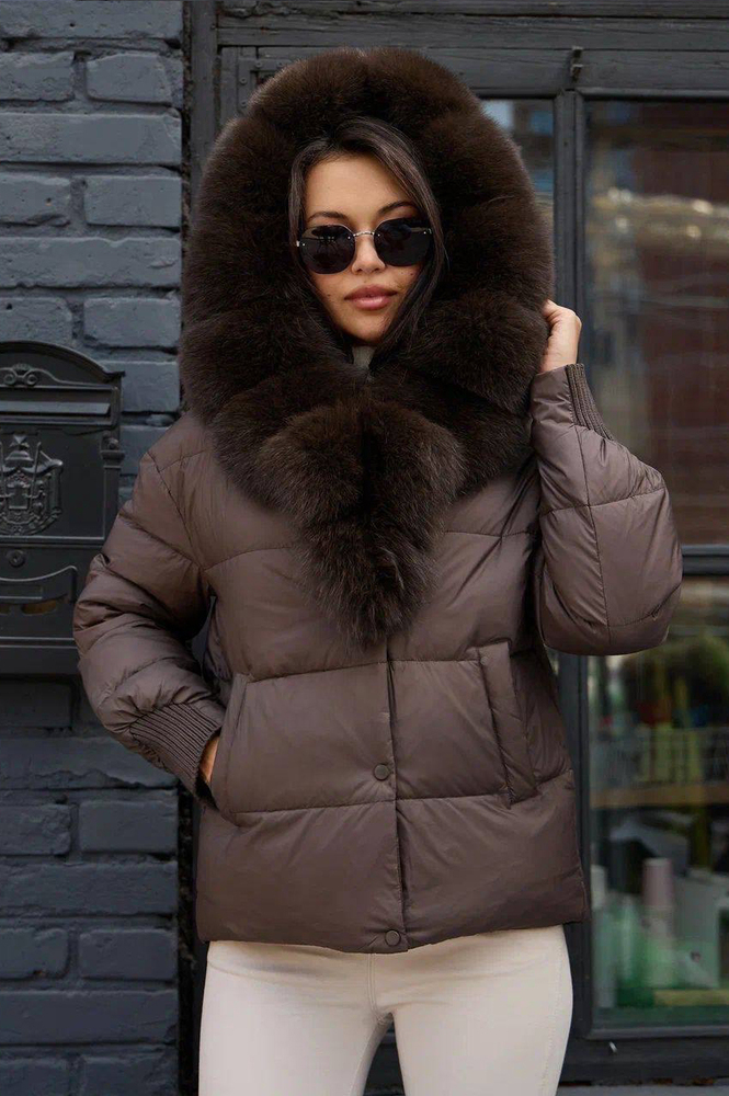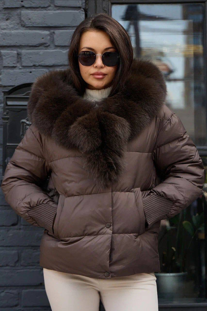 Короткий женский пуховик Vivilona с мехом песца
