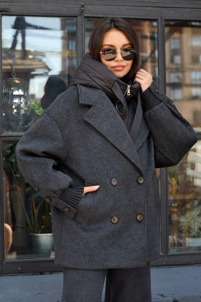 Легкое пуховое пальто в стиле пиджака от бренда Pang Million выполнено на пуговицах. Внутри пальто утеплено пухом и пером для комфортной теплоизоляции. Внешняя ткань — шерсть, что придает изделию изысканный вид. В конструкции предусмотрена манишка, которая переходит в капюшон с возможностью его отстегивания, обеспечивая удобство и универсальность в носке. Это стильное и практичное пальто отлично подойдет для холодных дней, сочетая легкость, тепло и элегантность.