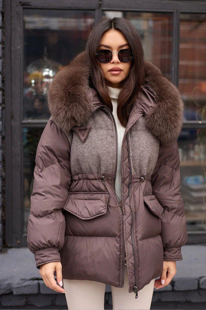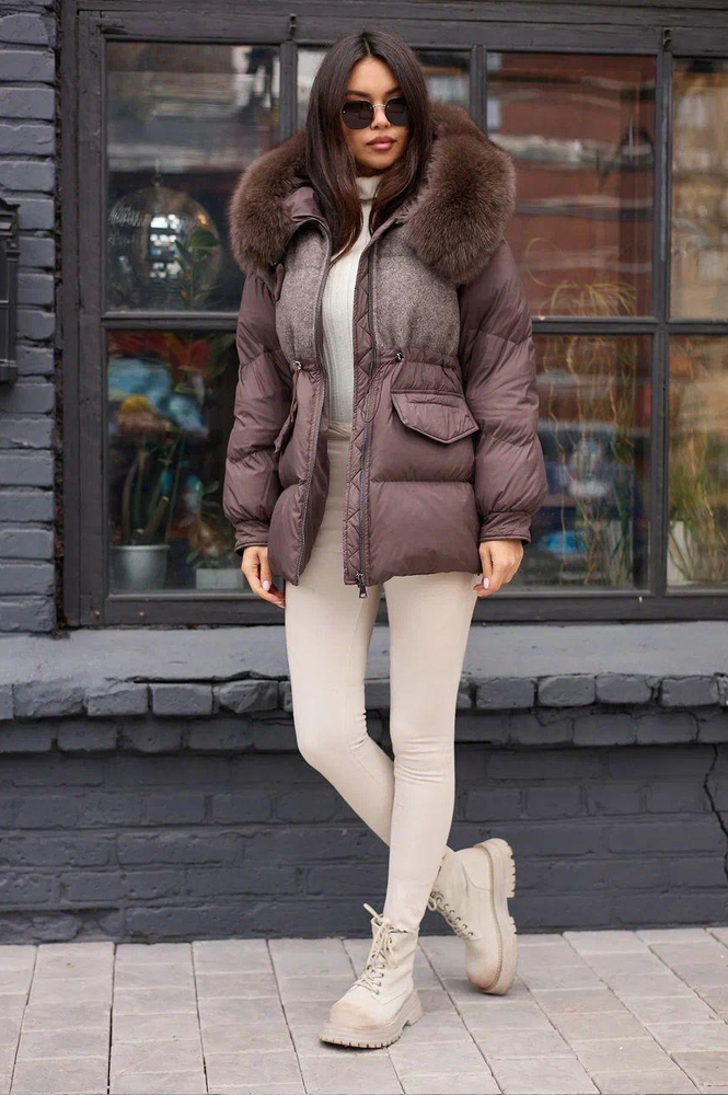 Модный женский пуховик Bogner на зиму 2026 года выполнен в насыщенном коричневом цвете. Верхняя часть украшена стильной шерстяной вставкой по верхней части плечей, что добавляет изделию элегантности и тепла. Наполнитель из пуха и пера обеспечивает отличную теплоизоляцию, а пояс с тесемкой позволяет подчеркнуть талию и создать приталенный силуэт. Этот пуховик сочетает в себе современный дизайн, функциональность и комфорт, идеально подходя для зимних прогулок и повседневной носки в холодное время года.