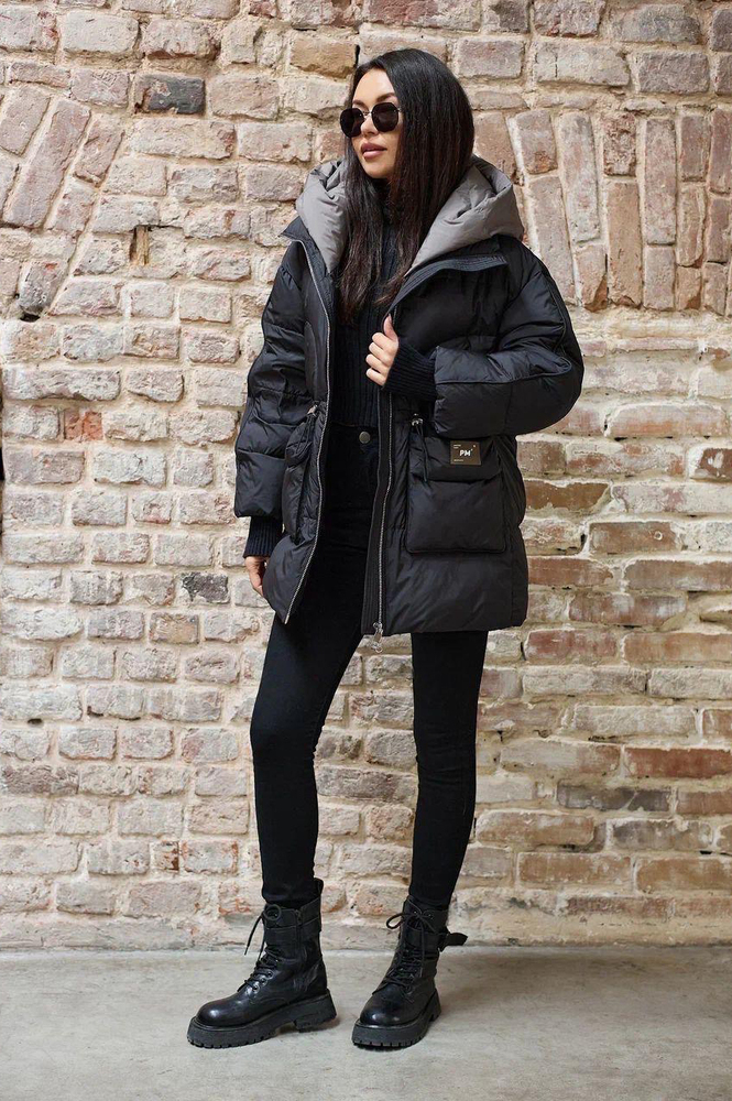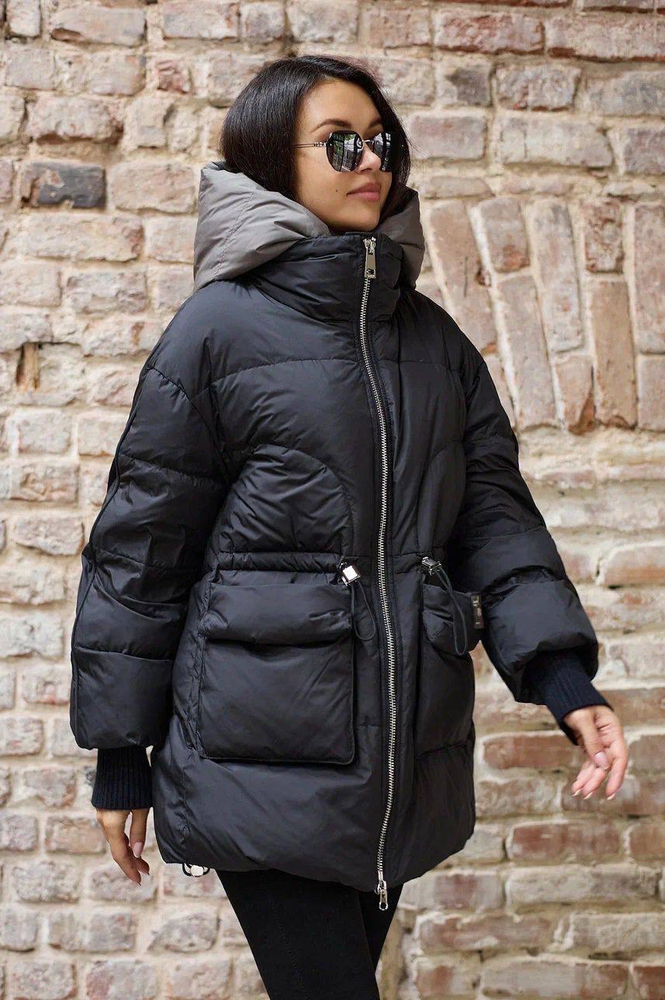 Пуховая зимняя куртка Pang Million выполнена в свободном крое, что обеспечивает комфорт и свободу движений. Куртка оснащена внутренней манишкой, которая дополнительно защищает от холода. Контрастный капюшон придает изделию яркий акцент и стильный вид. Накладные карманы добавляют практичности и удобства. Застежка выполнена на молнии и кнопках, что обеспечивает надежную защиту от ветра и холода. По переду расположены тесемки на талии, позволяющие регулировать посадку и подчеркивать силуэт. Цвет куртки — насыщенный черный, что делает ее универсальной и легко сочетаемой с различной одеждой. Эта пуховая куртка отлично подойдет для зимних прогулок и повседневной носки в холодное время года.
