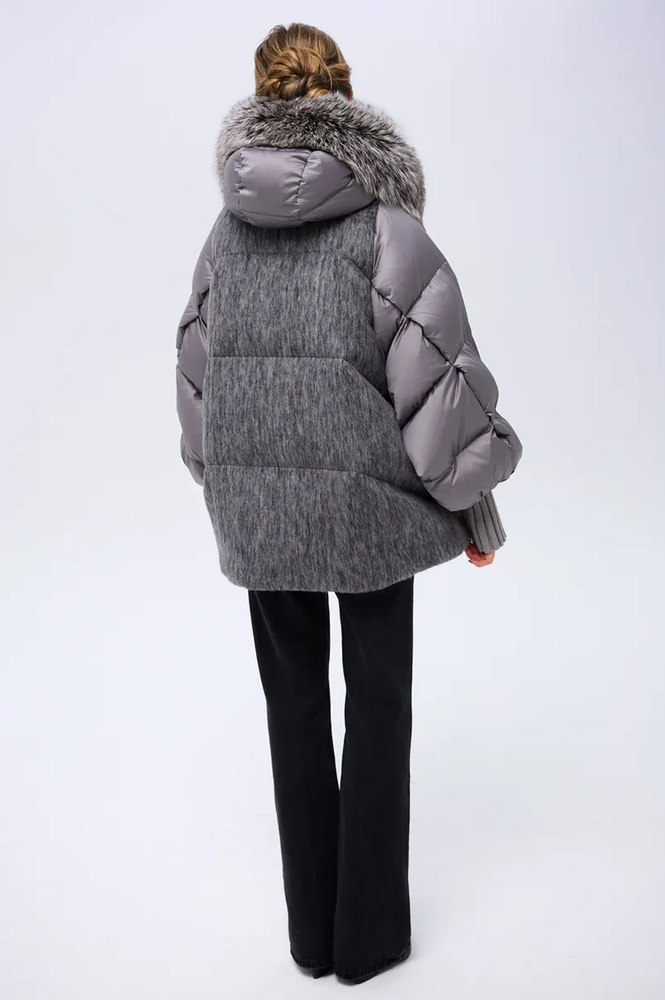 Пуховик-пальто бренда Tomas Bieber из полиэстера и валяной шерсти. Внутри — утеплитель из пуха и пера. Объемный оверсайз-крой и рукава с трикотажной выносной манжетой обеспечивают комфорт и современный стиль.