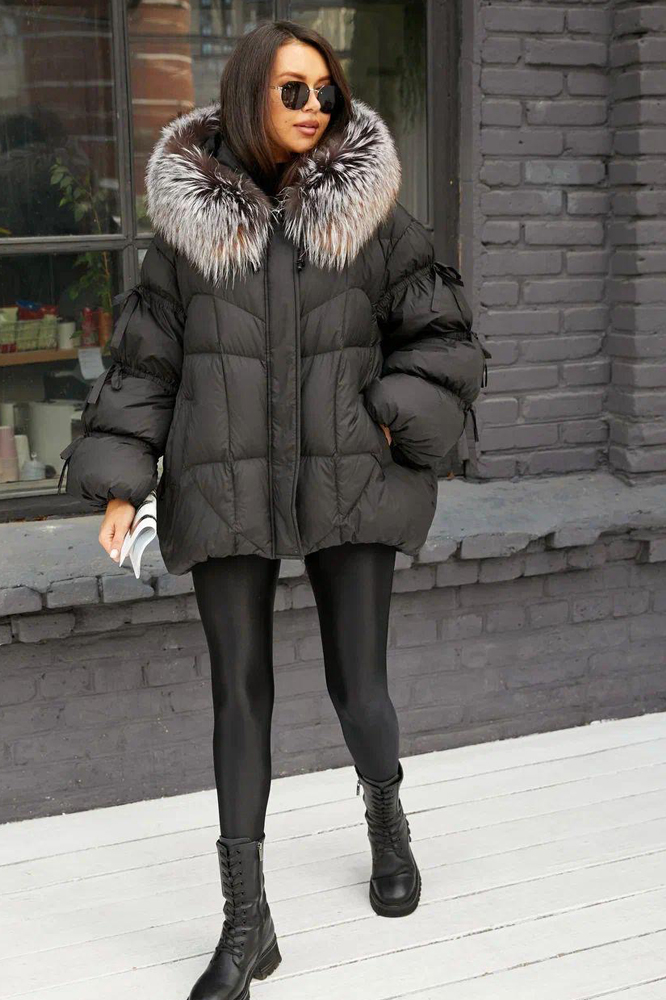 Теплый короткий пуховик из новой коллекции 2024-2025 фабрики Вивилона. Модель сшита в красивом черном цвете из дорогого итальянского полиэстра. Удобный воротник из меха можно отстегивать. Застежка на молнию, боковые карманы врезные. Для оптимального сохранения тепла и практичного пользования вещи утеплен пухом. Рукава с несколькими ряжами завязок для декорации. В фасоне использован популярный крой оверсайз, делающий вещь большой, объёмной и сохраняющей много теплого воздуха от тела, поэтому теплой.