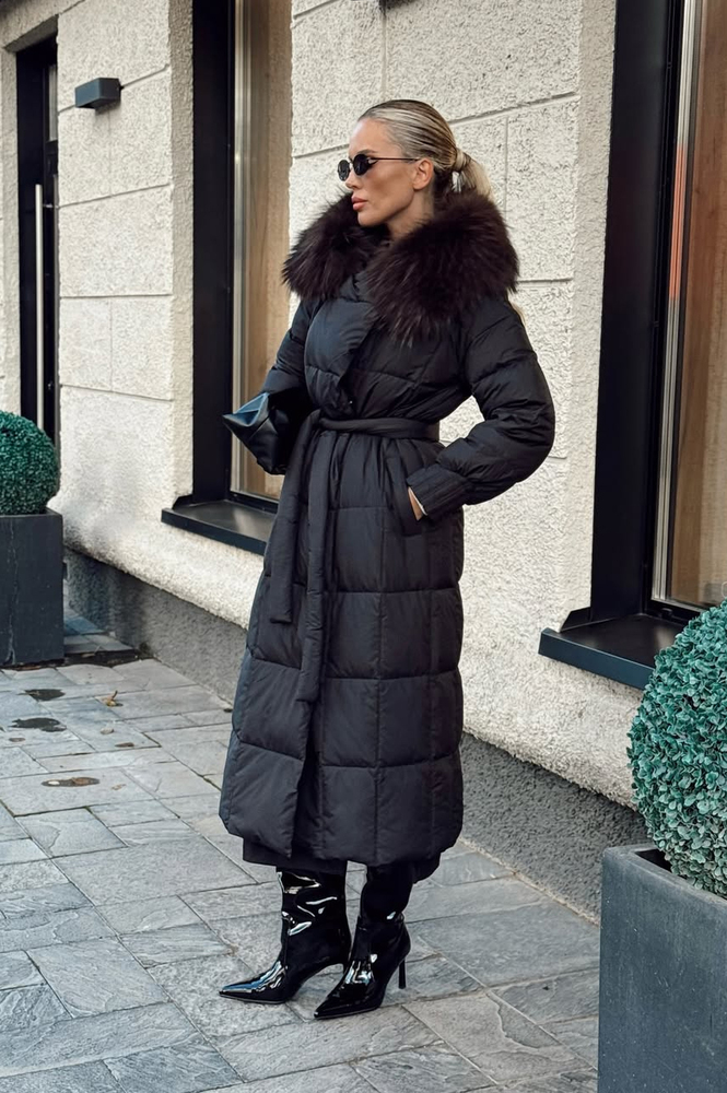 Стильный пуховик с мехом енота на воротнике и манжетами на рукавах. Изделие из плотной водоотталкивающей ткани с защитной пропиткой Внутри пух и перо. Застежка на молнии и кнопки. Шикарный мех на воротнике - натуральный тонированный енот. Если нужно, его легко отстегнуть. Приходи в шоурум чтобы купить куртку в зеленом или черном цветах.