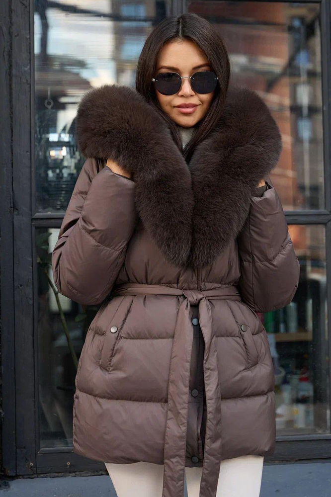 Элегантный удлиненный зимний пуховик женственного приталенного фасона на сезон 2026 года выполнен в строгих классических оттенках. Образ завершен теплым меховым английским воротником, привлекающим внимание и придающим изделию особый шарм. Мягкая талия фиксирована удобным поясом, визуально создавая стройный силуэт. Рукава оснащены декоративными манжетами, дополняя гармоничный образ изделия. Внутри пуховика используется качественный пух и перо, обеспечивающие идеальную теплоизоляцию даже в экстремальные погодные условия. Этот трендовый предмет гардероба станет незаменимым аксессуаром холодной русской зимы.