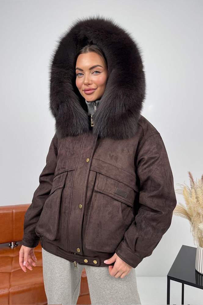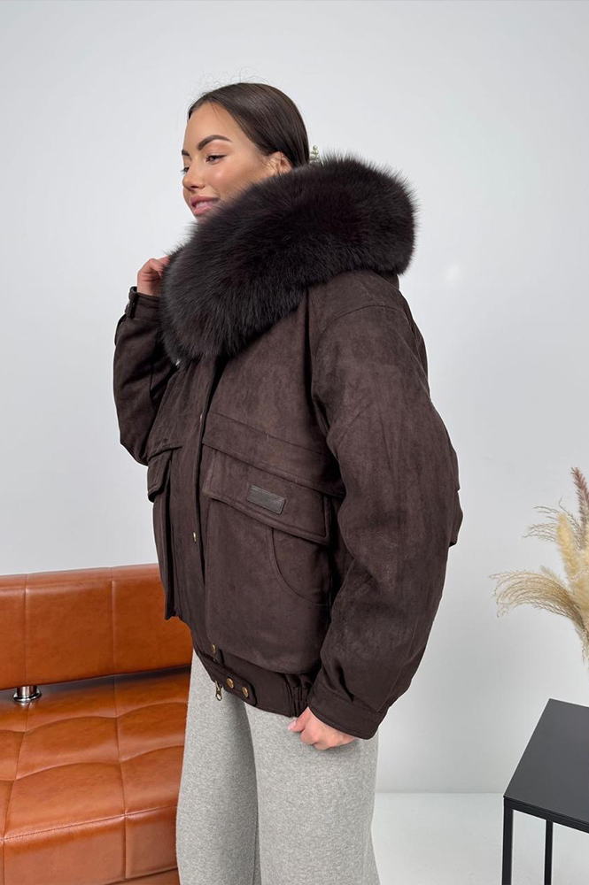 Женский короткий пуховик с мехом песца от Pang Million выполнен из эко-замши и имеет стильный оверсайз крой с широкими рукавами. Внутри он утеплен натуральным пухом и пером, что обеспечивает отличную теплоизоляцию в холодную погоду. Модель оснащена удобной застежкой на кнопки и молнию, а длинна короткая подчеркивает современный стиль. Идеальный выбор для уютных и теплых образов зимой.
