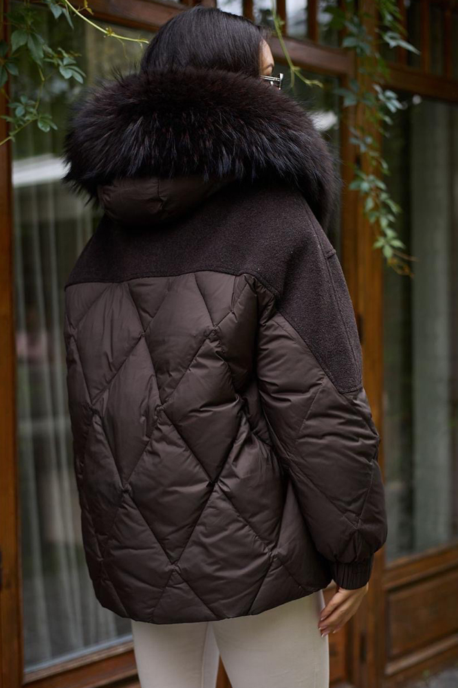 Короткий зимний пуховик от бренда Btn Button коллекции 2025–2026 года воплотил в себе лучшие качества премиум-класса. Привлекательный коричневый цвет основной ткани создает атмосферу тепла и уюта, поднимая настроение в холодные дни. Богатый мех песца на капюшоне придаёт внешности истинную роскошь и завораживает своей естественной красотой. Верхняя часть изделия выполнена из премиальной шерсти, которая не только выглядит дорого, но и обеспечивает комфорт и тепло в любое время суток. Пухово-перьевой наполнитель позволяет сохранять тепло даже в суровые морозы, давая возможность наслаждаться прогулками вне зависимости от погодных условий. Данный пуховик непременно украсит гардероб и сделает ваши прогулки незабываемыми.