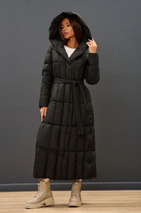 Очень длинный женский пуховик от Vivilona, созданный для тех, кто любит подчеркнуть красоту своего силуэта и при этом оставаться защищённой от холодов. Длина изделия достигает внушительных 130 сантиметров, что позволяет закрыть ноги почти до щиколоток, оберегая вас от переохлаждения. Силуэт модели приталенный, с изящным поясом, зрительно сужающим талию и подчёркивающим достоинства фигуры. Внутренняя структура пуховика выполнена из качественного пуха и пера, обеспечивающего абсолютную защиту от низких температур. Эргономически разработанный капюшон приятно сидит на голове, плотно охватывая затылочную область и не мешая обзору. Эти характеристики делают данную модель идеальной для длительных прогулок на свежем воздухе, а также походов в театр или кино.