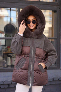 Дутое пальто пуховое с мехом песца
