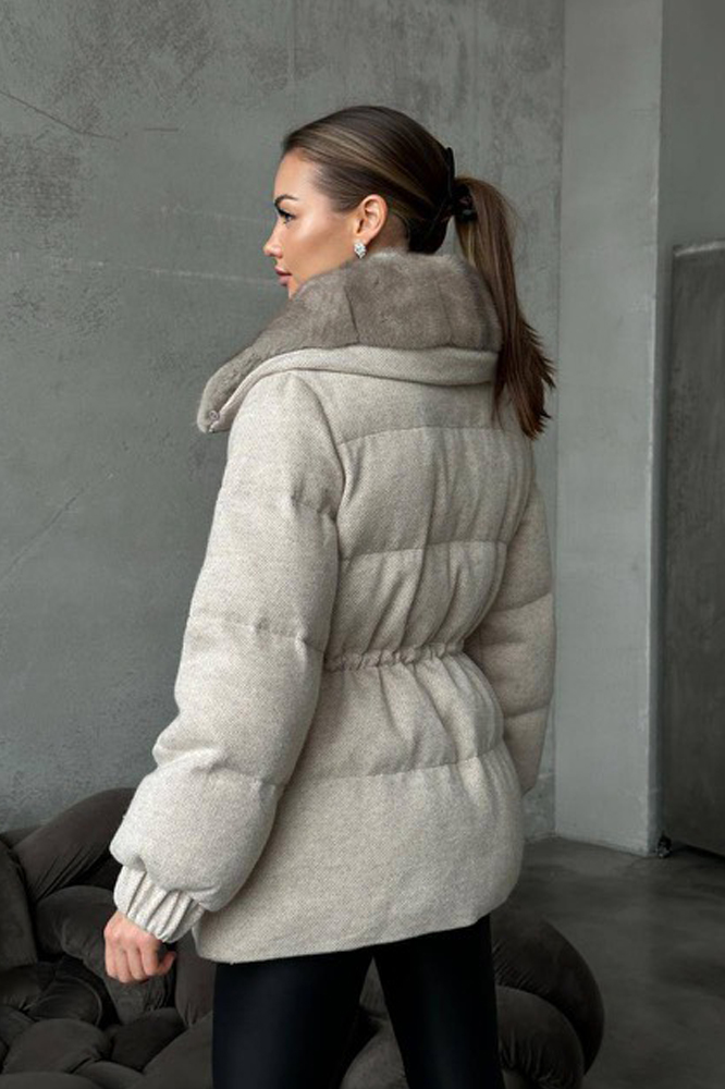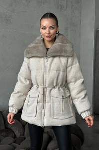 Стильная женская пуховая парка с мехом норки на воротнике — идеальный выбор для холодных дней. Модель выполнена в элегантном бежевом цвете и украшена мехом, что придает образу особую изысканность. Куртка застегивается на надежную молнию и кнопки, а два накладных кармана спереди обеспечивают удобство и функциональность. Утеплитель из пуха и пера гарантирует тепло и комфорт даже в самые морозные дни. Практичная и стильная, эта парка отлично дополнит ваш зимний гардероб.