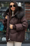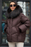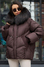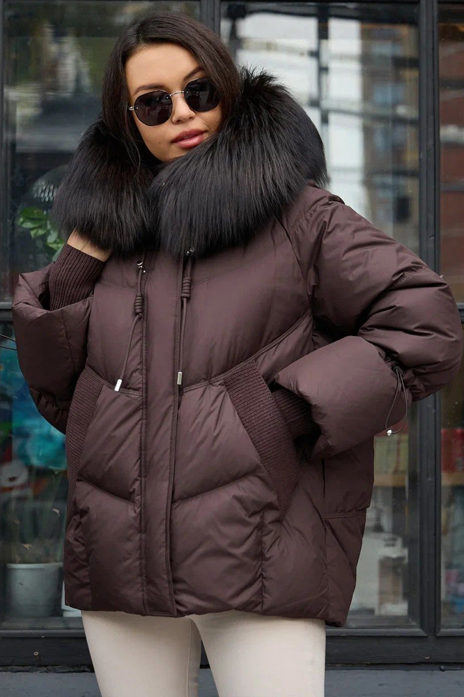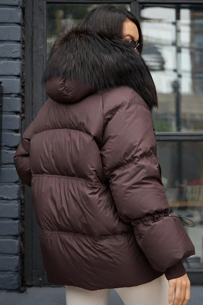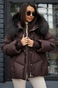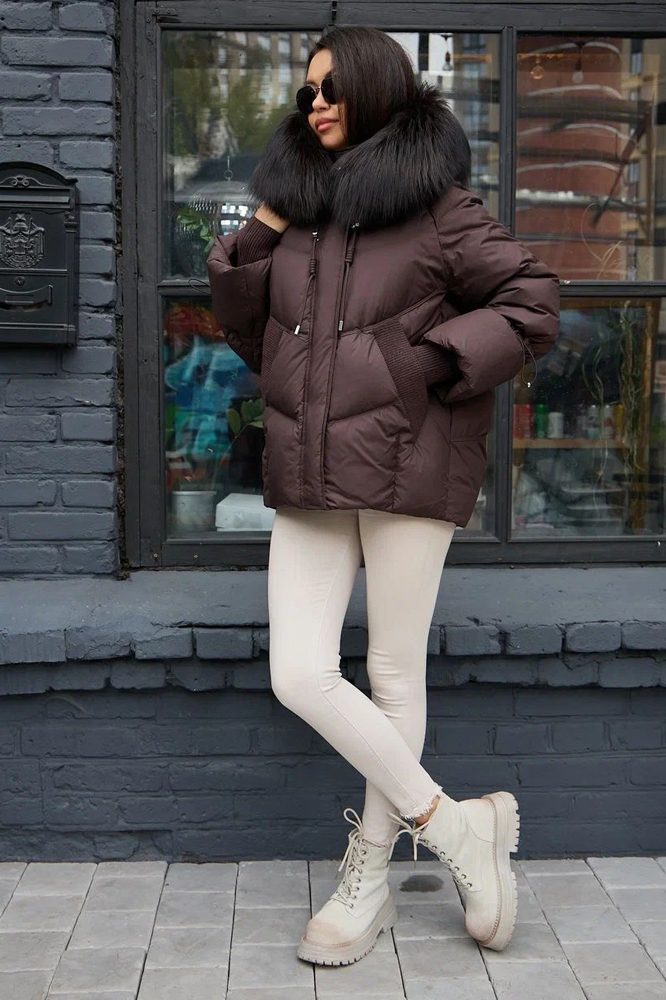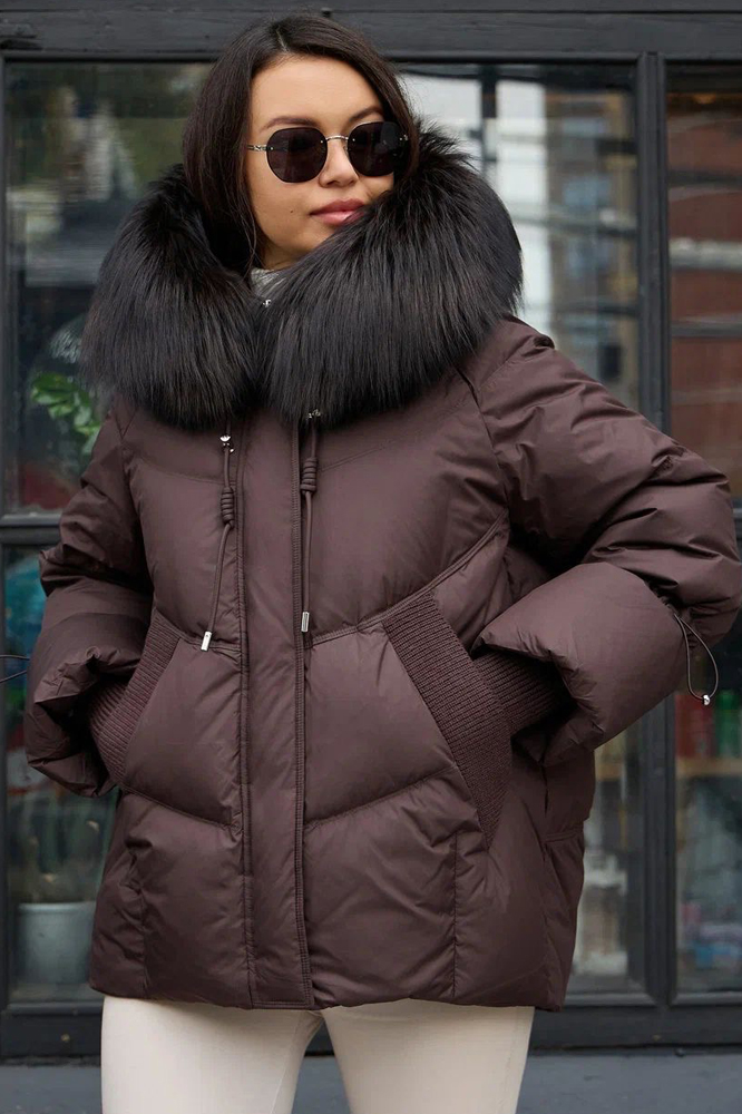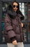 Пуховик с мехом енота коричневого цвета