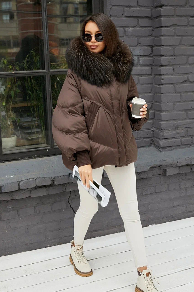 Пуховик vo tarun укороченный коричневый