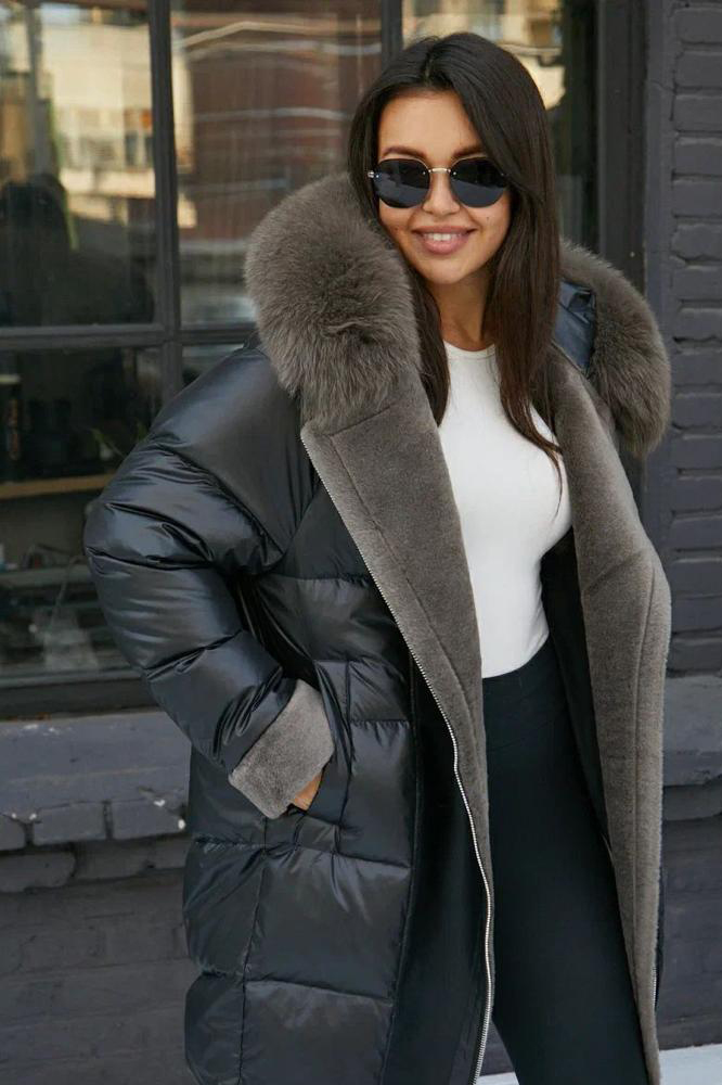 Стильный пуховик не приталенного кроя зима 2025
