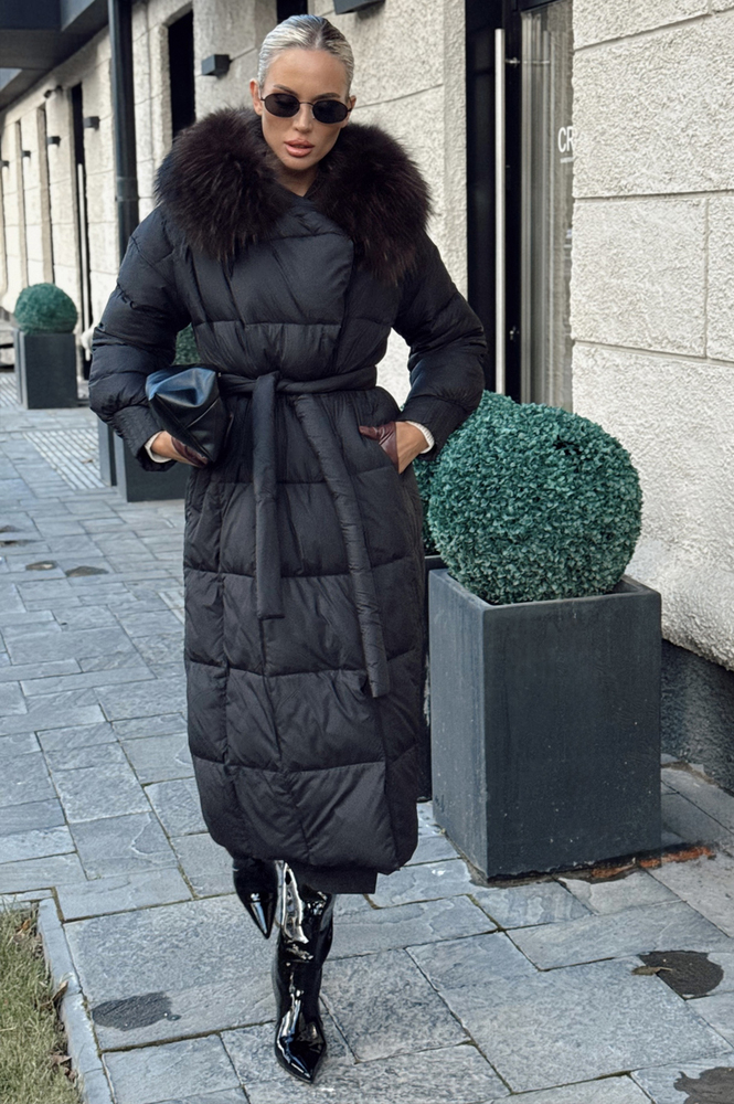 Стильный пуховик с мехом енота на воротнике и манжетами на рукавах. Изделие из плотной водоотталкивающей ткани с защитной пропиткой Внутри пух и перо. Застежка на молнии и кнопки. Шикарный мех на воротнике - натуральный тонированный енот. Если нужно, его легко отстегнуть. Приходи в шоурум чтобы купить куртку в зеленом или черном цветах.
