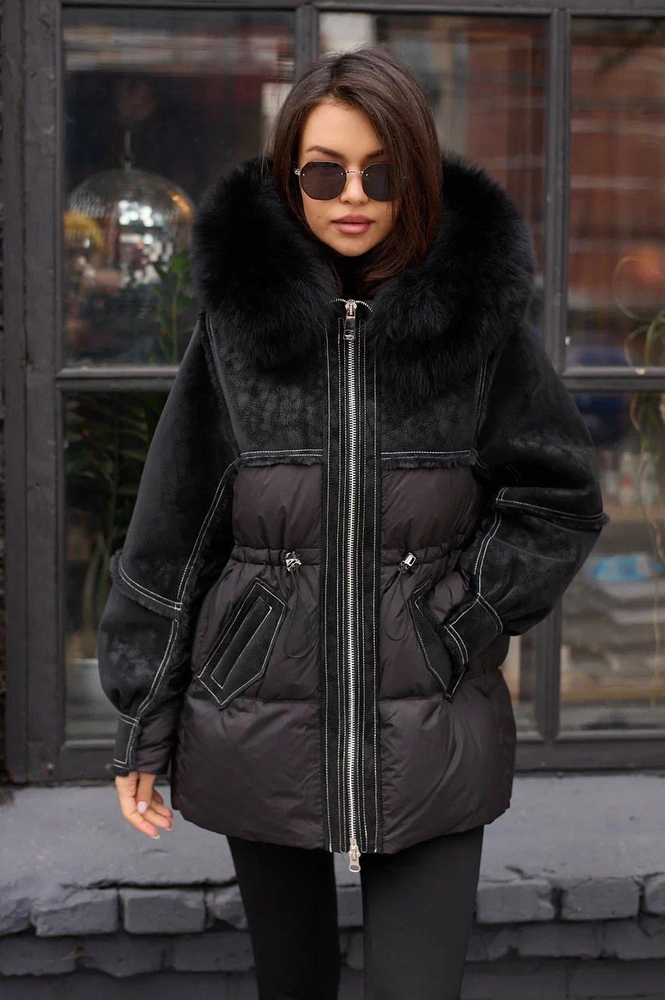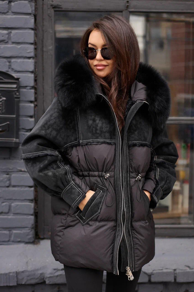 Черный зимний пуховик Pang Million выполнен из высококачественных материалов с вставками из замши, что придает изделию стильный и современный вид. Наполнитель из пуха и пера обеспечивает отличную теплоизоляцию и комфорт в холодную погоду. Модель обладает оверсайз-кроем, по переду приталенной линией, что создает актуальный силуэт. Капюшон украшен мехом песца, добавляя изделию роскоши и уюта. Этот пуховик идеально подойдет для зимних прогулок и повседневной носки, сочетая функциональность и модный дизайн.