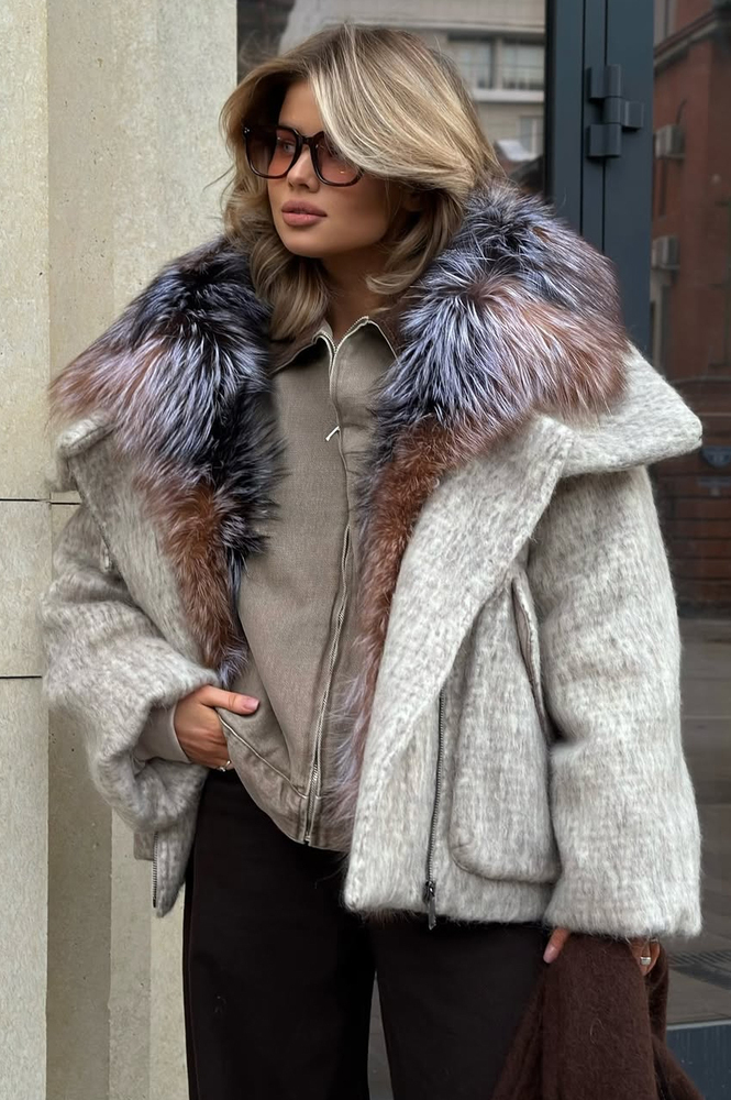 Утепленное пальто с меховым воротником из меха чернобурки от бренда Tannossto выполнено из валяной шерсти. Внутри модель утеплена утиным пухом для максимального тепла и комфорта. Застежка на молнию обеспечивает удобство и надежность. Стильное и теплое, это пальто отлично подойдет для холодных зимних дней, сочетая роскошь меха и практичность.