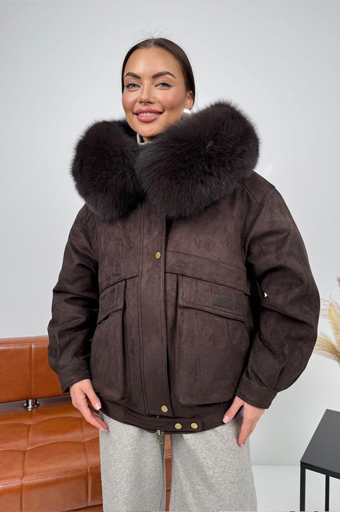 Женский короткий пуховик с мехом песца от Pang Million выполнен из эко-замши и имеет стильный оверсайз крой с широкими рукавами. Внутри он утеплен натуральным пухом и пером, что обеспечивает отличную теплоизоляцию в холодную погоду. Модель оснащена удобной застежкой на кнопки и молнию, а длинна короткая подчеркивает современный стиль. Идеальный выбор для уютных и теплых образов зимой.