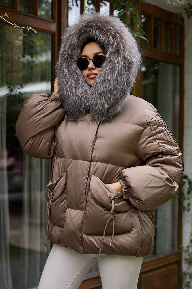 Женский зимний пуховик Vo Tarun в стиле оверсайз выполнен в песочном цвете и оснащен теплым мехом енота по капюшону. Модель отличается вместительными глубокими накладными карманами и объемными воланами на рукавах, что придает образу выразительность и женственность. Прочный и теплый, этот пуховик отлично подходит для холодных зимних дней, сочетая стильный дизайн с комфортом и функциональностью. Каталог 2025-2026.