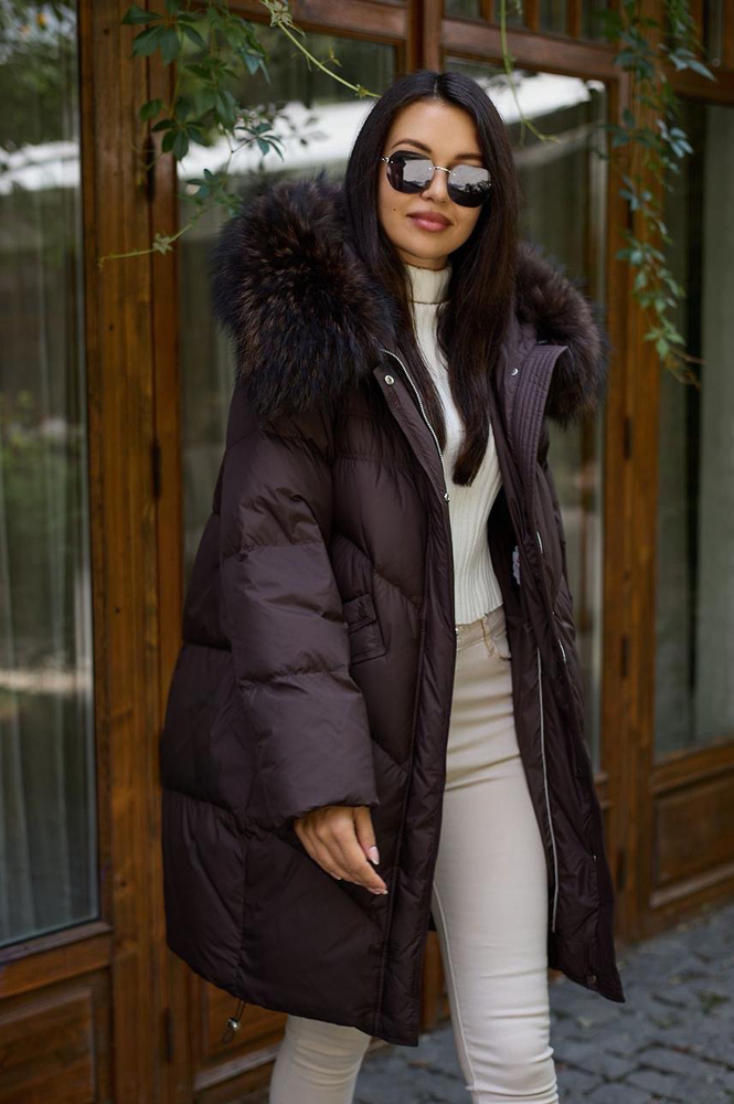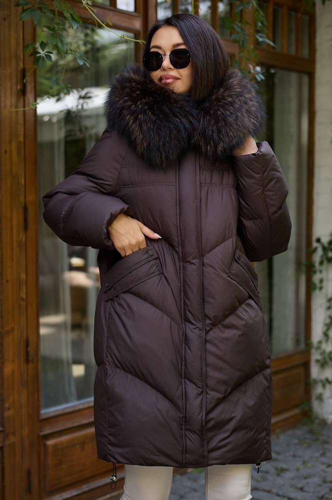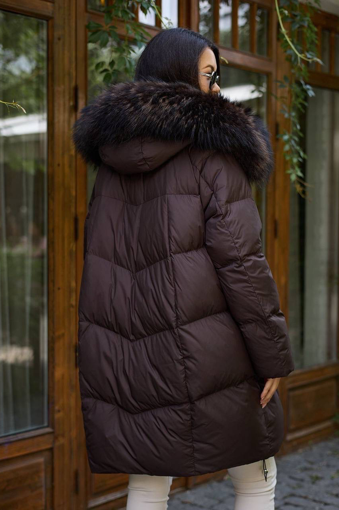 Женское зимнее пуховое пальто Vo Tarun выполнено в стиле оверсайз, что обеспечивает комфорт и свободный крой. Пальто украшено мехом енота на капюшоне, который придает изделию элегантность и дополнительную защиту от холода. Застежка выполнена на молнии и кнопках, что обеспечивает надежность и удобство при носке. Рукава с манжетами и утяжками позволяют регулировать посадку и сохранять тепло. Цвет пальто — насыщенный коричневый, что делает его универсальным и легко сочетаемым с различной одеждой. Это стильное и теплое решение для зимних дней, которое подчеркнет ваш образ и обеспечит комфорт в холодную погоду.