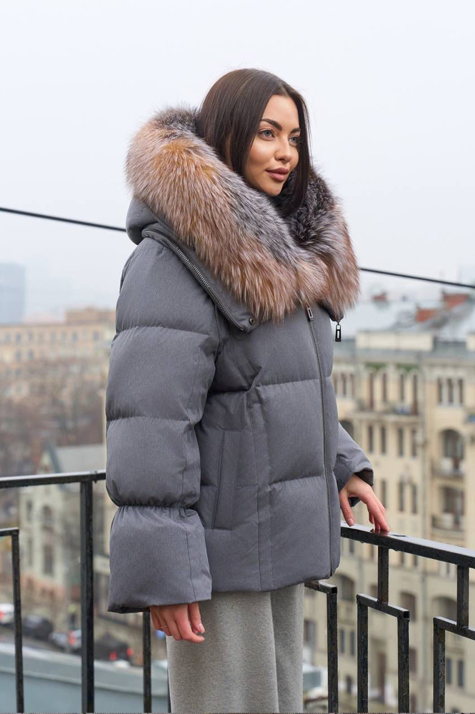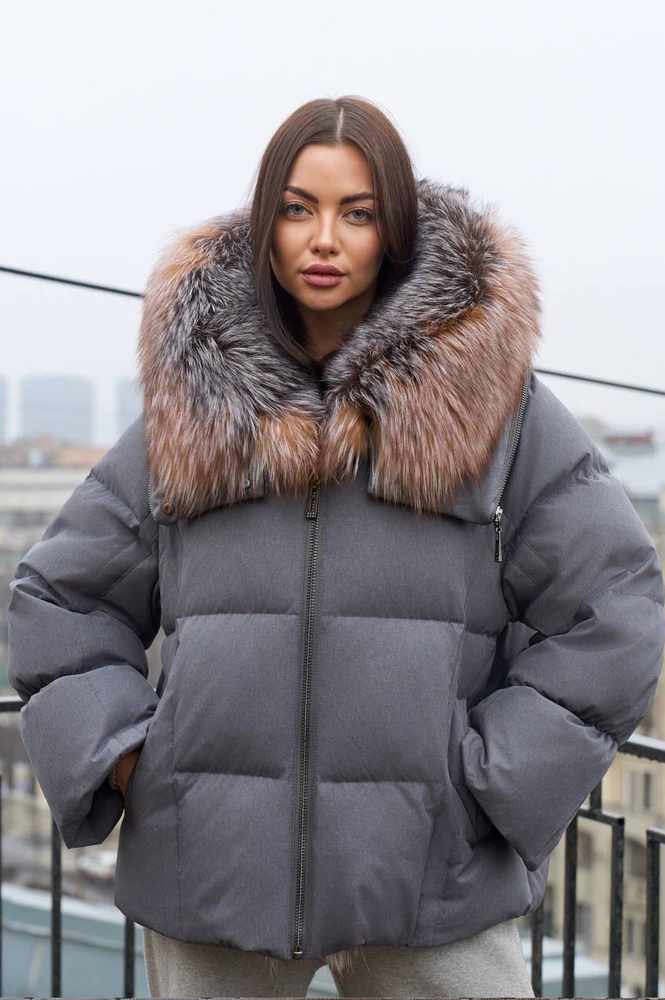 Женский зимний пуховик Tannossto 2025-2026 выполнен в стильном сером цвете и предназначен для холодных месяцев. Модель выполнена в свободном оверсайз-крое и длиной выше колен, что обеспечивает дополнительное тепло и комфорт. Главной особенностью является большой натуральный мех лисы на капюшоне, который придает образу роскошь и уют. Утеплитель состоит из пуха и пера, обеспечивая отличную теплоизоляцию. На рукавах расположены трикотажные манжеты, которые защищают от ветра и сохраняют тепло. Этот пуховик — идеальный выбор для тех, кто ценит стиль, комфорт и надежность в зимний период.